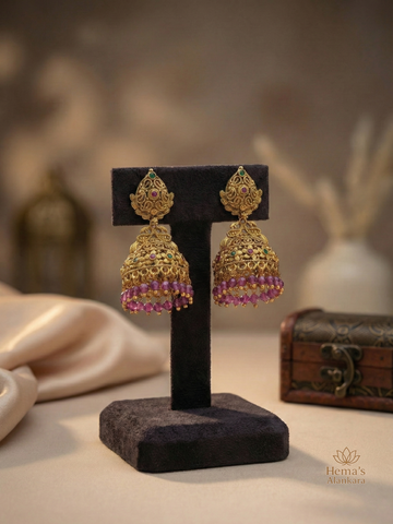Intricately carved forms inspired by ancient craftsmanship. From goddess motifs to traditional drops, these earrings echo devotion, elegance, and timeless South Indian artistry.