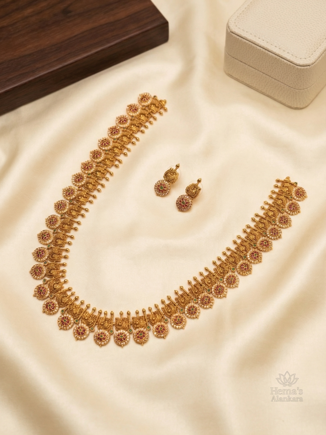 Antique Gold Kemp Stone Floral Bottu Necklace Set with Earrings